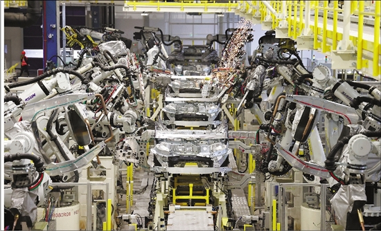 位于义乌绿色动力小镇的吉利汽车义乌制造工厂完成大规模产线改造,带动产能跃升50%(资料照片)。