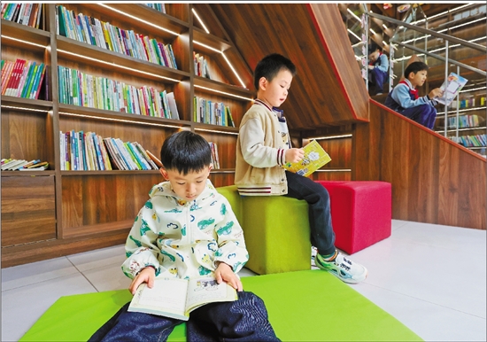 4月21日,诸暨市暨阳街道乐龄中心图书角,孩子们挑选自己喜爱的书籍阅读。 通讯员 蒋力奔 马啸天 摄