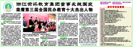 目前,浙江荣怀教育集团已走向跨地域、多层次办学,努力打造成中国最有影响力的教育集团之一。