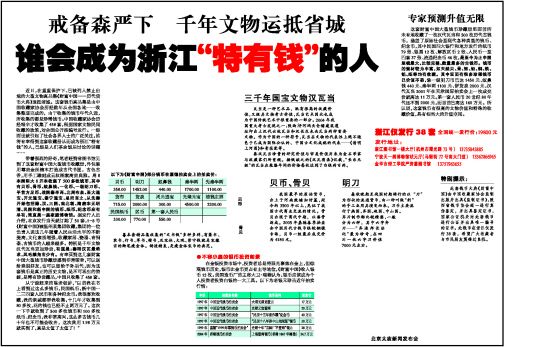 近日,在重重保护下、已被列入禁止出境的大型文物真品集《财富中国——历代货币大典》运抵省城。这套钱币真品集是由中国收藏家协会历经数年从全国各地一一收集整理完成的,由于收集的钱币年代久远,所收集的都是珍稀钱币。中国收藏家协会历经艰辛才收集了458套,根据国家文物民间收藏的政策,对全国公开按编号发行。一经面世就引起了社会各界人士的广泛关注,谁将有幸得到这套收藏册从而成为浙江“特有钱”的人,已经是人们茶余饭后讨论的话题……