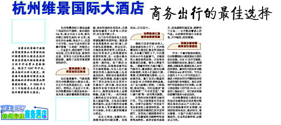 站在装潢豪华、气派典雅的杭州维景国际大酒店大堂,只见中外宾客进进出出,生意兴旺。看得出,开业近十年来,杭州维景国际大酒店始终如一地为客人提供着高雅的酒店设施、商务环境和优质服务,用满腔热忱赢得了众多客人的好评,回头客不断上升。