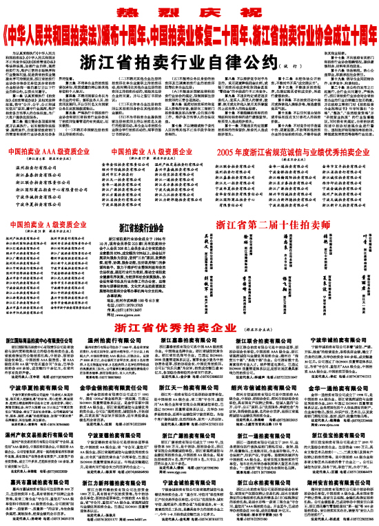 《中华人民共和国拍卖法》颁布十周年、中国拍卖业恢复二十周年、浙江省拍卖行业协会成立十周年