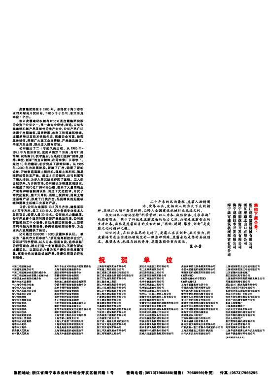 二十年来的风雨兼程,虎霸人励精图治、荣辱与共,发扬浙人敢为天下先的精神,在钱江大潮中奋勇拼搏,已跨入全国建设机械行业先进之列。