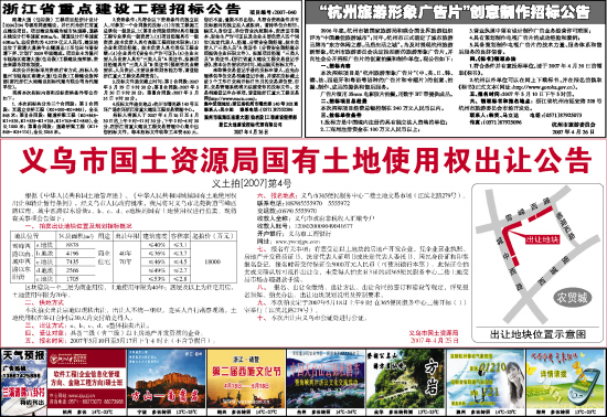 2006年底,杭州市被国家旅游局和联合国世界旅游组织评为“中国最佳旅游城市”;同年,杭州市正式确定了城市旅游品牌为“东方休闲之都,品质生活之城”。为及时展现杭州旅游新形象,杭州市旅游委员会决定投拍新的旅游形象广告片,并向社会公开招标广告片的创意拍摄和制作单位。现公告如下:
