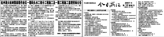 招标人:杭州港大松树集装箱码头筹建处 2007年6月26日