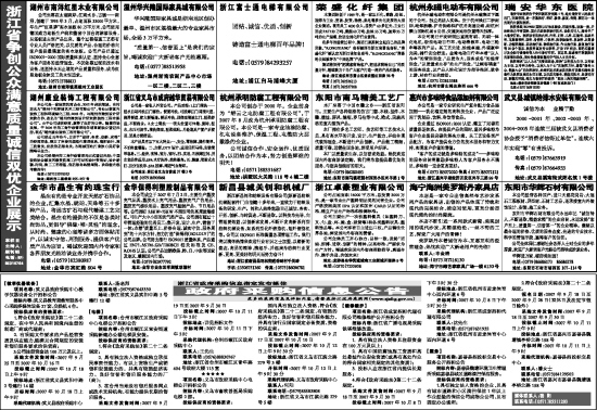 2000~2001年、2002~2003年、2004~2005年连续三届被武义县消费者协会授予“消费者信得过单位”。连续六年实现“零”有责投诉。