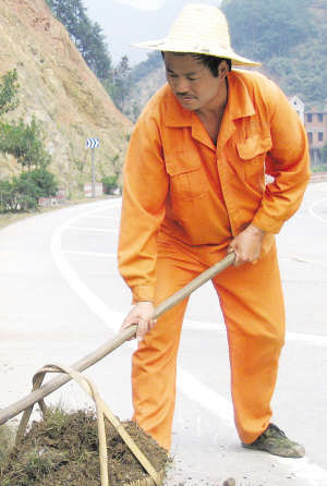 “冬天一身霜、晴天一身土、雨天一身泥”,养路工人工作环境艰苦,又脏又累,可是他没有半句怨言。在他养护的17省道华白线上,他不知道走过了多少遍,已经记不清拉过多少车石子,清理了多少处塌方的路面,修补了多少个深深浅浅的坑槽了。