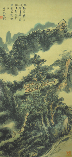 近代还有海派代表人物黄宾虹的二幅精品,藏家承诺保真保退,经专家鉴定其中一幅山水是黄宾虹先生的晚期精品力作,而且在人美出版社出版的黄宾虹画集上卷123页中有著录,此画作品还保留当时原装原裱,画风浑厚华溢意境情致,用笔厚重、线条刚健,金石笔意老道犹如闪电雷霆之势。而另一幅海派大师黄宾虹先生的作品一反常规表现手法却是鲜协艳丽的色彩,笔墨凝重、简练、以色传情、以染聚意,经专家认定为黄宾虹先生早年试笔之独有的一幅另类精美海派风格的精道之作,实属难得一见的孤品。