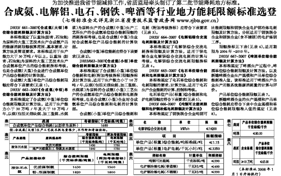 合成氨、电解铝、电石、钢铁、啤酒等行业地方能耗限额标准选登