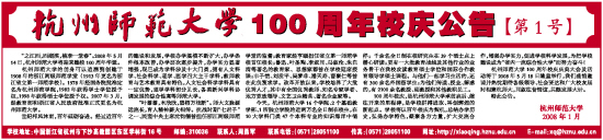 100周年校庆,是杭州师范大学承前启后、继往开来的里程碑,是学校拼搏进取、再创辉煌的新起点。学校将以百年校庆为契机,总结办学历史,弘扬办学特色,凝聚各方力量,扩大交流合作,增强办学实力,促进学校科学发展,为把学校建设成为“省内一流综合性大学”而努力奋斗!