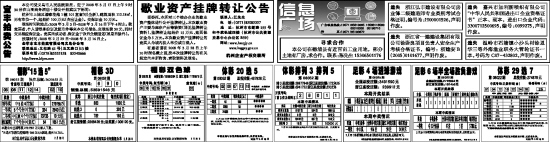 受委托,本所对三个校办企业的歇业资产整体进行公开挂牌转让。本次歇业资产主要为库存产品等物资(详见挂牌转让资料),挂牌转让起始价15万元,竞买保证金为5万元。本次歇业资产挂牌转让的竞买人为境内法人单位或自然人。