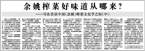 ——写在首届中国(余姚)榨菜文化节之际(中)