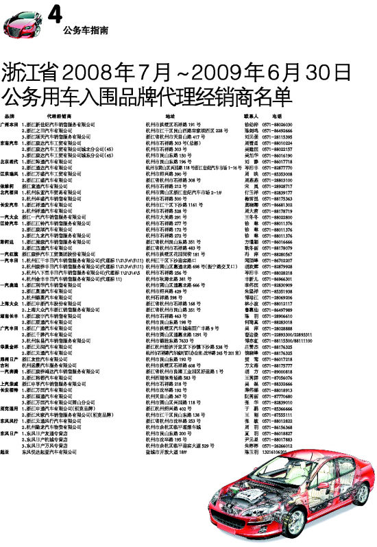 3、浙江九龙汽车销售服务有限公司 杭州市石祥路272号 徐 琳 0571-88011376