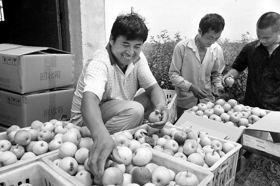 | 日前,湖州南浔区双林镇邢窑村张林宝正在果园里对新采摘的苹果打包装箱。他种植的20多亩苹果日渐成熟,这些天源源不断地销往杭嘉湖等地的水果超市。以前,浙江本地几乎不产苹果。 本报记者 邵全海 通讯员 吴建勋 摄 |