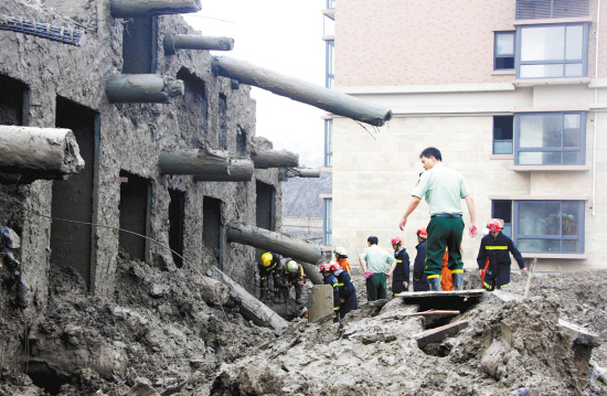 6月27日,上海闵行区一幢13层在建商品楼发生倒塌事故,图为倒塌现场。