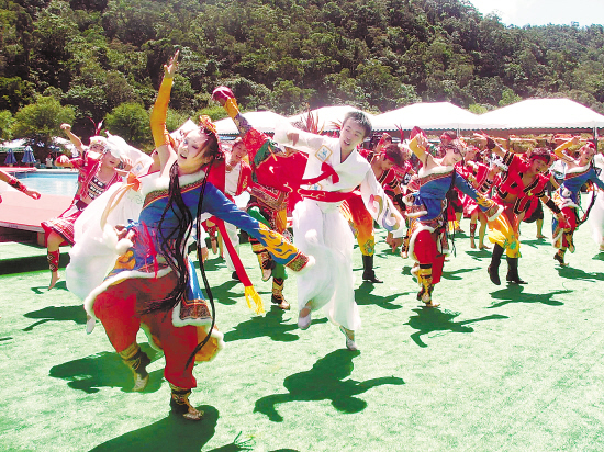 图为“兰雨节”开幕式上,浙江东方民族民间艺术团的演员们表演团体舞《世纪中国风》。