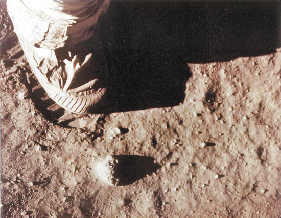 | ▲1969年7月20日,美国“阿波罗”11号飞船安全着陆月球,几个小时后,宇航员阿姆斯特朗登上月球,在月球上首次留下人类的足迹。这张照片显示了阿姆斯特朗当时在月球表面留下右脚脚印的瞬间。 |