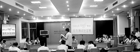 | 为了提升整体服务水准,更好地为广大客户提供优质服务,7月20日晚,中国人保财险金华市分公司95518专线举行业务知识抢答赛,检验专线工作人员的业务基本功。章周松 摄 |