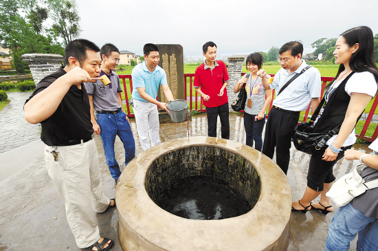 来自福建龙岩的游客在瑞金沙洲坝“红井”饮水思源,进行革命传统教育(7月3日摄)。