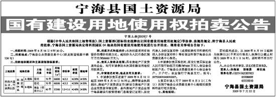 3.竞买申请人可于2009年8月3日(工作日)后到宁海县公共资源交易中心购领拍卖资料和进行相关咨询。