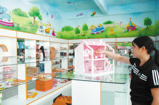 | 全球首个木玩主题游乐园即将开园 工作人员正忙着在玩具超市里摆放玩具。云和县金成工艺礼品厂于去年1月投资1000多万元,建造了一座以木玩为主题的玩具智慧园。园内设有博览园、益智乐园、创意馆、玩具超市等,游客在园中不仅可以玩玩具、买玩具、了解玩具文化,而且可以制作玩具。据悉,这是全球首个玩具主题游乐园,也是云和县目前唯一一个将木制玩具与旅游巧妙地结合在一起的玩具智慧园。该园将于8月初开园迎接游客。县报道组 叶敏 摄 |