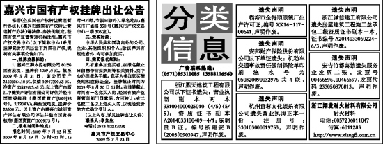 报名时间:2009年7月23日至2009年8月19日(9时~11时,15时~17时,节假日除外)。报名地点:嘉兴市广场路350号(嘉兴市产权交易中心三楼306室)。