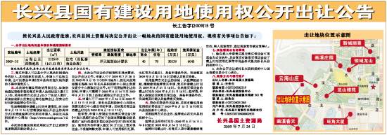 六、符合拍卖条件的宗地,其国有建设用地使用权拍卖会定于2009年8月13日15时在长兴县招投标中心举办。