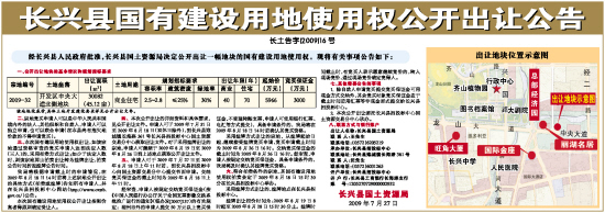 六、符合拍卖条件的宗地,其国有建设用地使用权拍卖会定于2009年8月18日15时30分在长兴县招投标中心举办。