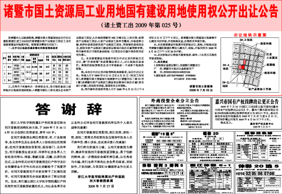 诸暨市国土资源局工业用地国有建设用地使用权公开出让公告