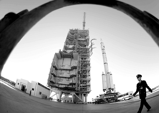 运载火箭在酒泉卫星发射中心整装待发。新华社发(资料照片)