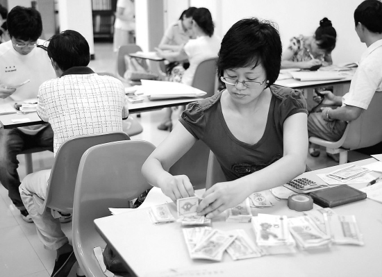 | 为进一步提高网点转型的效果,提升基层行零售业务的竞争力,农行宁波江北支行在岗位练兵的基础上,又于日前举行了业务技术比赛。图为选手在参加外币兑换项目比赛。 邢永春 袁毅 摄 |