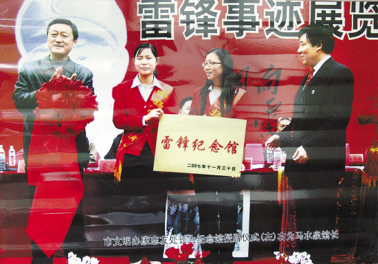 2007年11月30日,马水泉(右一)在杭州雷锋纪念馆授牌仪式上。