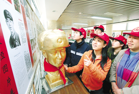 2008年3月,杭州市的学生及志愿者在杭州雷锋纪念馆参观。