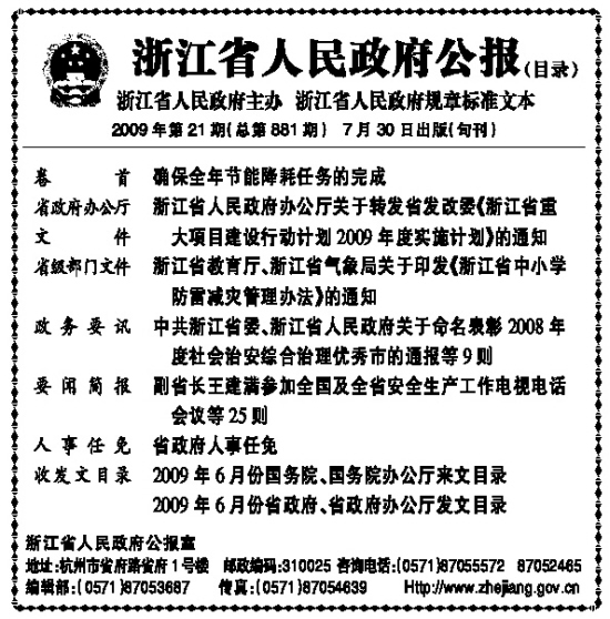 编辑部:(0571)87053687 传真:(0571)87054639 Http://www.zhejiang.gov.cn