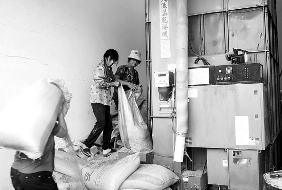| 7月30日,温岭市新河镇种粮大户颜保林把丰收的稻谷送到市中心粮库的烘干机烘干。连日阴雨天气让很多种粮大户着急,对此温岭市中心粮库专门提供3台烘干机免费为种粮大户烘粮,每天可烘干稻谷2万公斤。 本报记者 陈敢 通讯员 绍禹 永正 摄 |