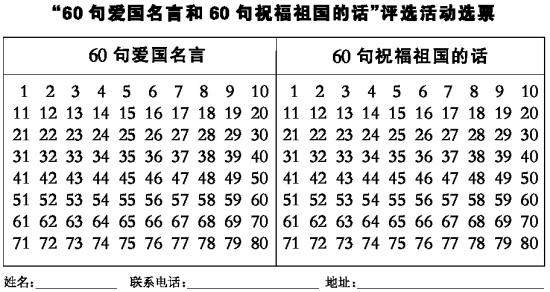 “60句爱国名言和60句祝福祖国的话”评选活动选票