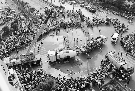大型工程运输车辆频频“闯祸”,已经引起了社会的极大关注。图为今年9月发生在杭州的一起工程车肇事现场。