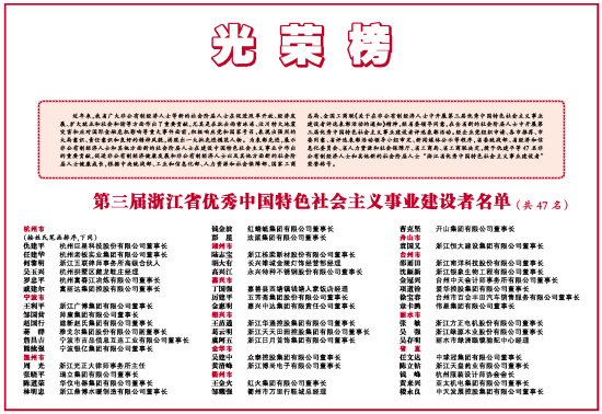 第三届浙江省优秀中国特色社会主义事业建设者名单