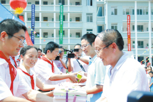 在落成仪式上,中国移动浙江公司还向100所学校赠送了“成长向导”电子书籍,并向卡森希望小学捐赠了篮球、排球、羽毛球等体育器材。