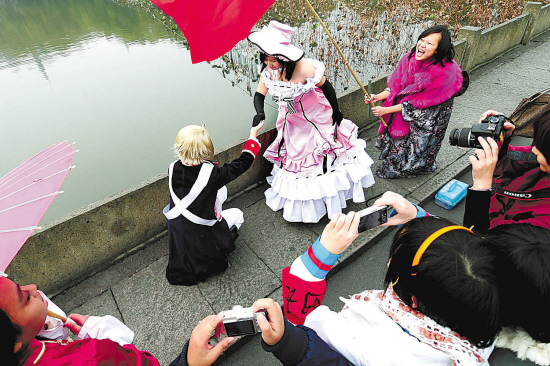 昨天,一群身着动漫服的年轻人出现在西湖边,吸引了众多游人的目光。这些动漫迷在湖边拍照留念,成了一道靓丽的风景。