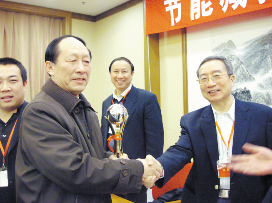 ↑国家发改委能源所原领导给公司颁发“中国企业新纪录节能减排双十佳企业”奖杯。