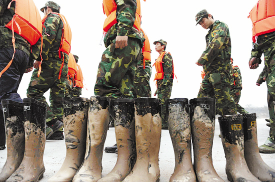 搜救人员全力搜寻失踪者。 本报记者 梁臻 摄