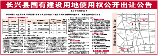 六、符合拍卖条件的宗地,其国有建设用地使用权拍卖会定于2010年1月15日15时在长兴县招投标中心举办。