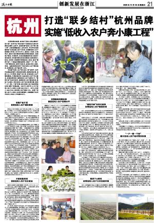 杭州打造“联乡结村”杭州品牌实施“低收入农户奔小康工程”