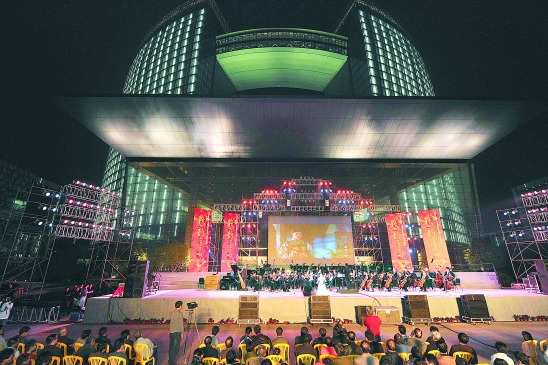 一曲浪漫乐章,一次激情飞扬。10月17日,杭州爱乐乐团首次在钱塘江畔的市民中心广场奏响户外音乐会。秋风徐徐的钱塘江畔,许多市民携亲带友挤在广场上,闻着桂花香,听着交响乐。 记者 吴元峰 吴煌 摄
