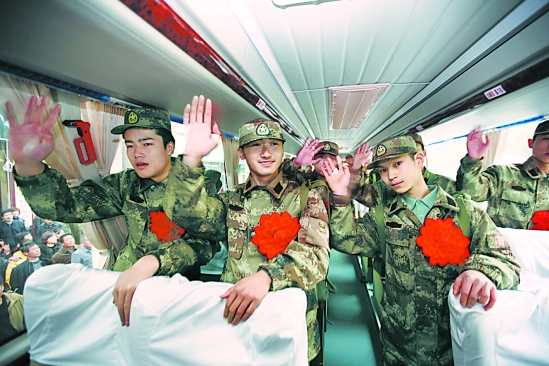 2009年12月,新兵们挥手告别家乡(资料图片)。