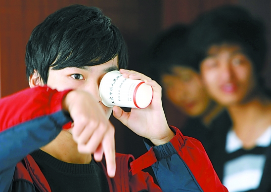 10月19日,一名青年在诸暨征兵体检点接受视力检查。