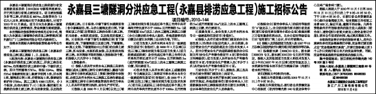 永嘉县三塘隧洞分洪应急工程(永嘉县排涝应急工程)施工招标公告