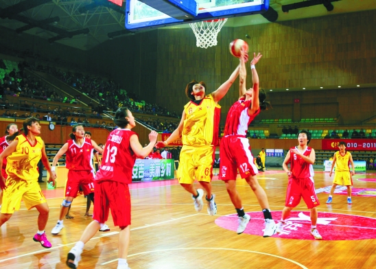 双方球员在拼抢篮板。通讯员 夏鹏飞 摄
