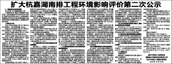 扩大杭嘉湖南排工程环境影响评价第二次公示